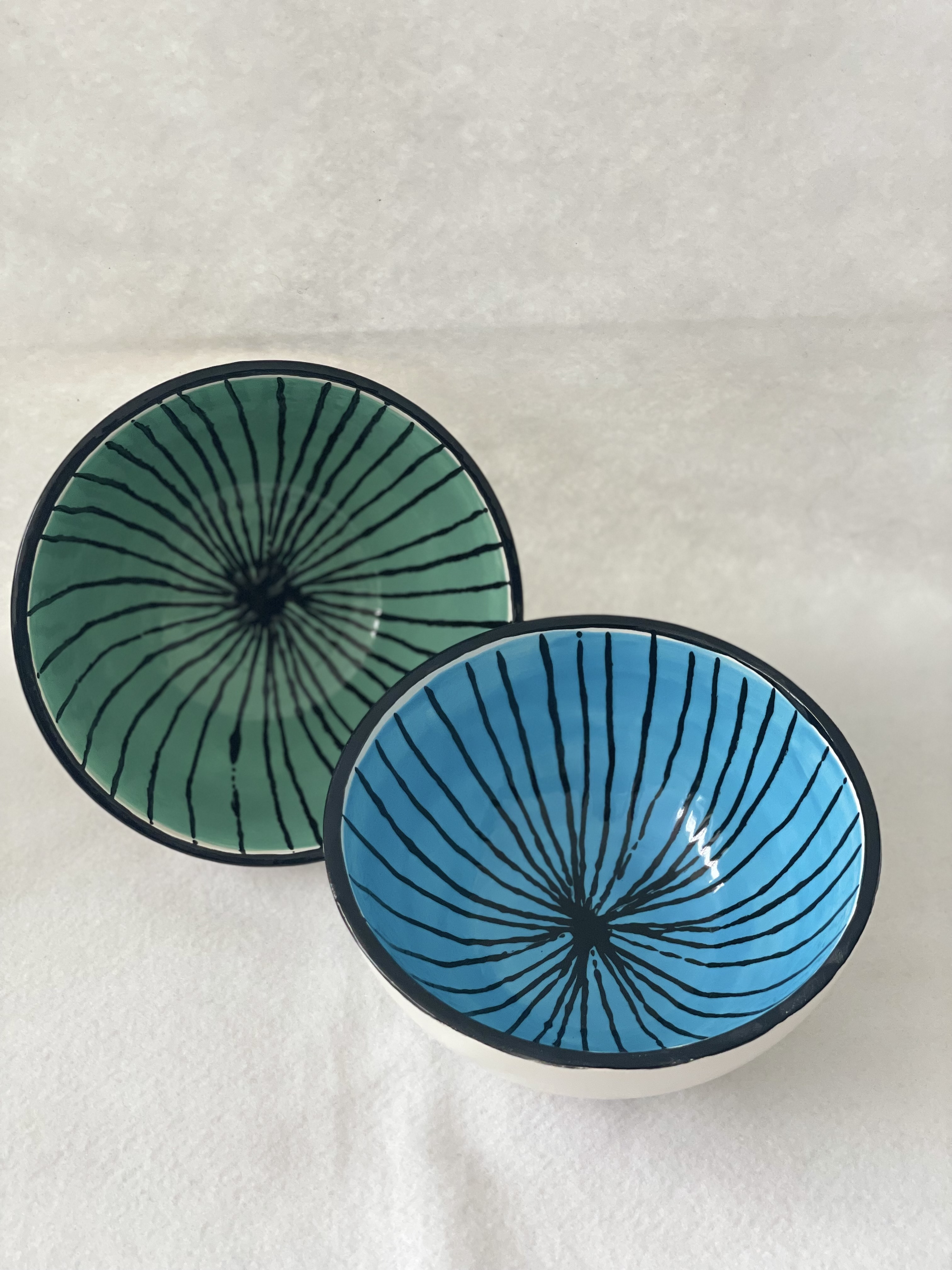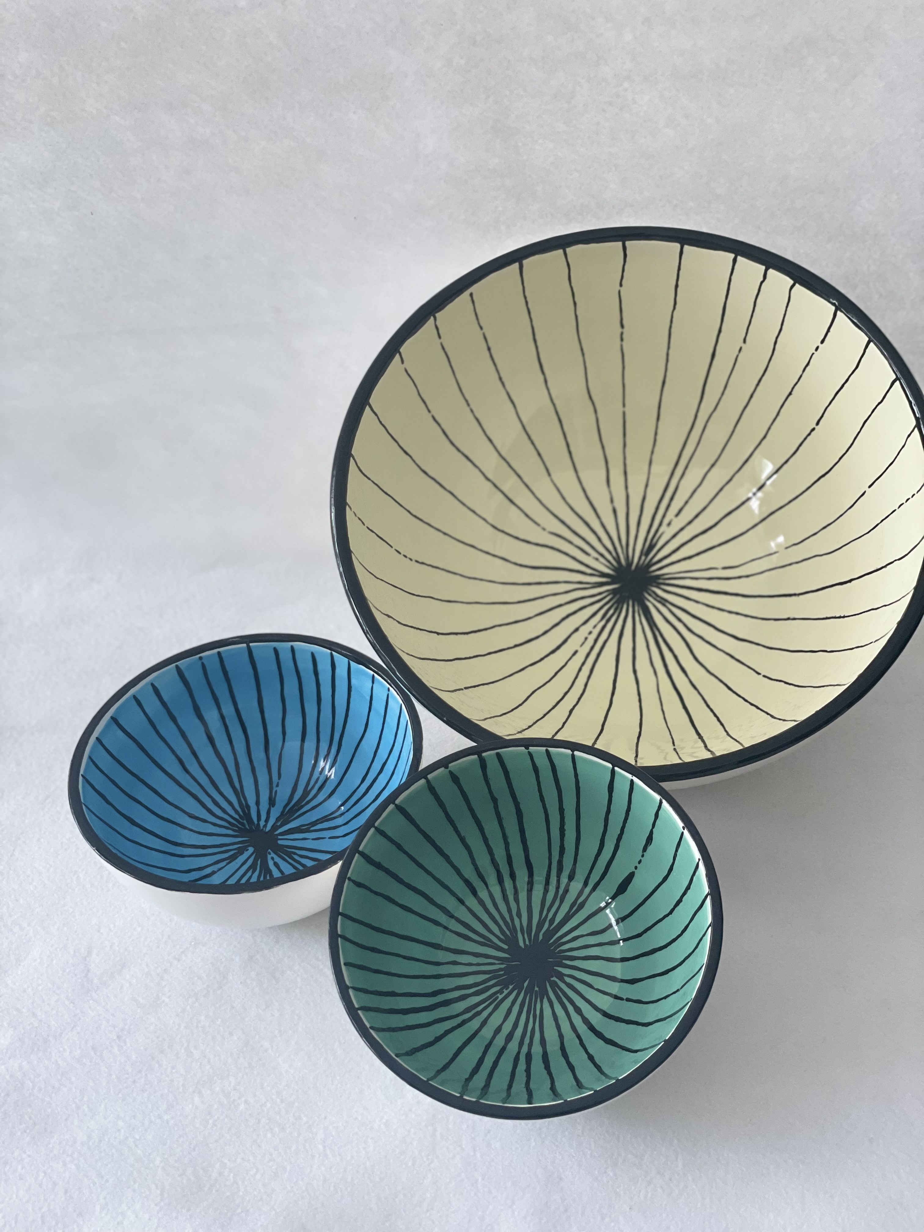 Insalatiera e ciotole a righe, in diversi colori e dimensioni