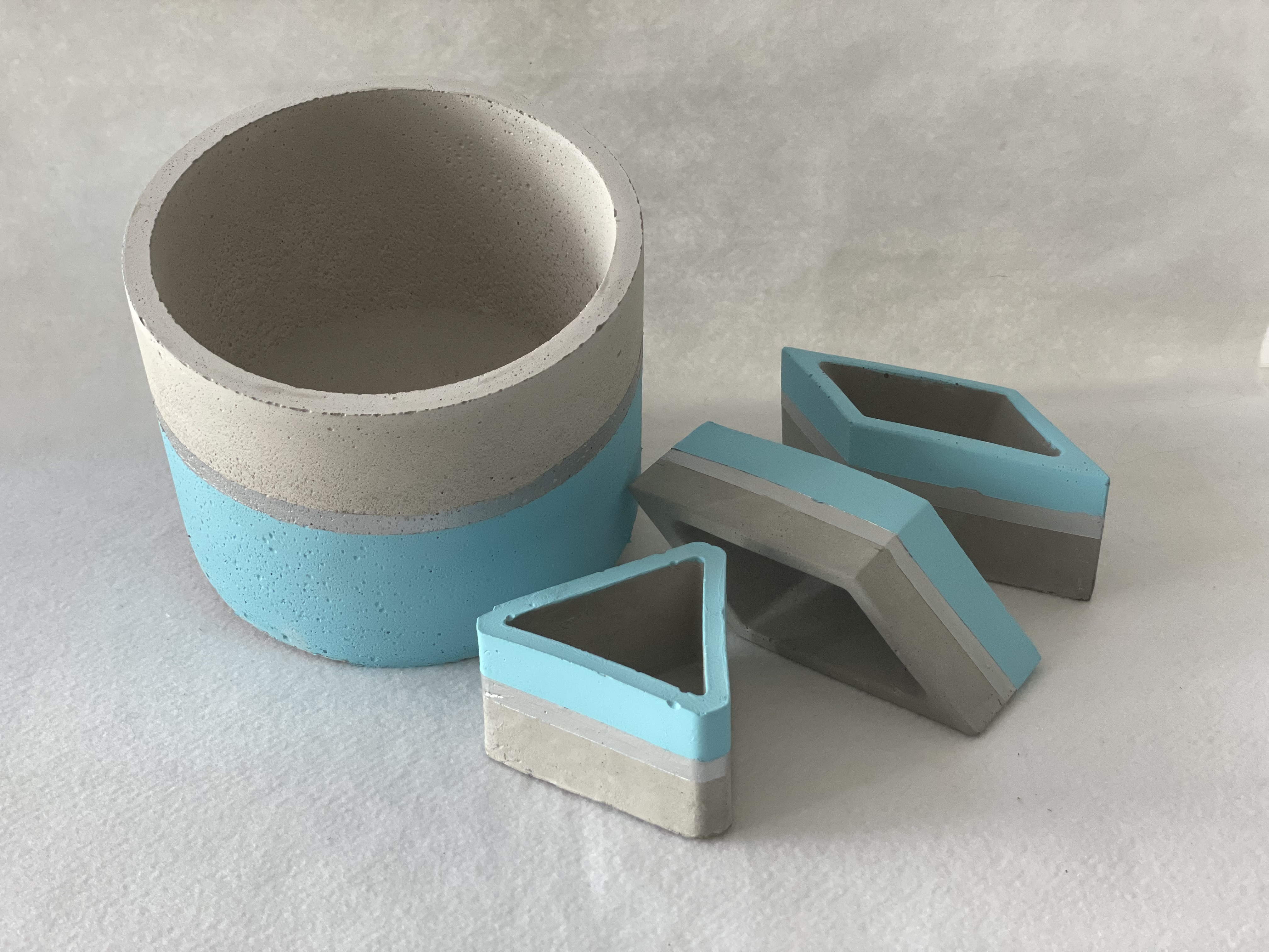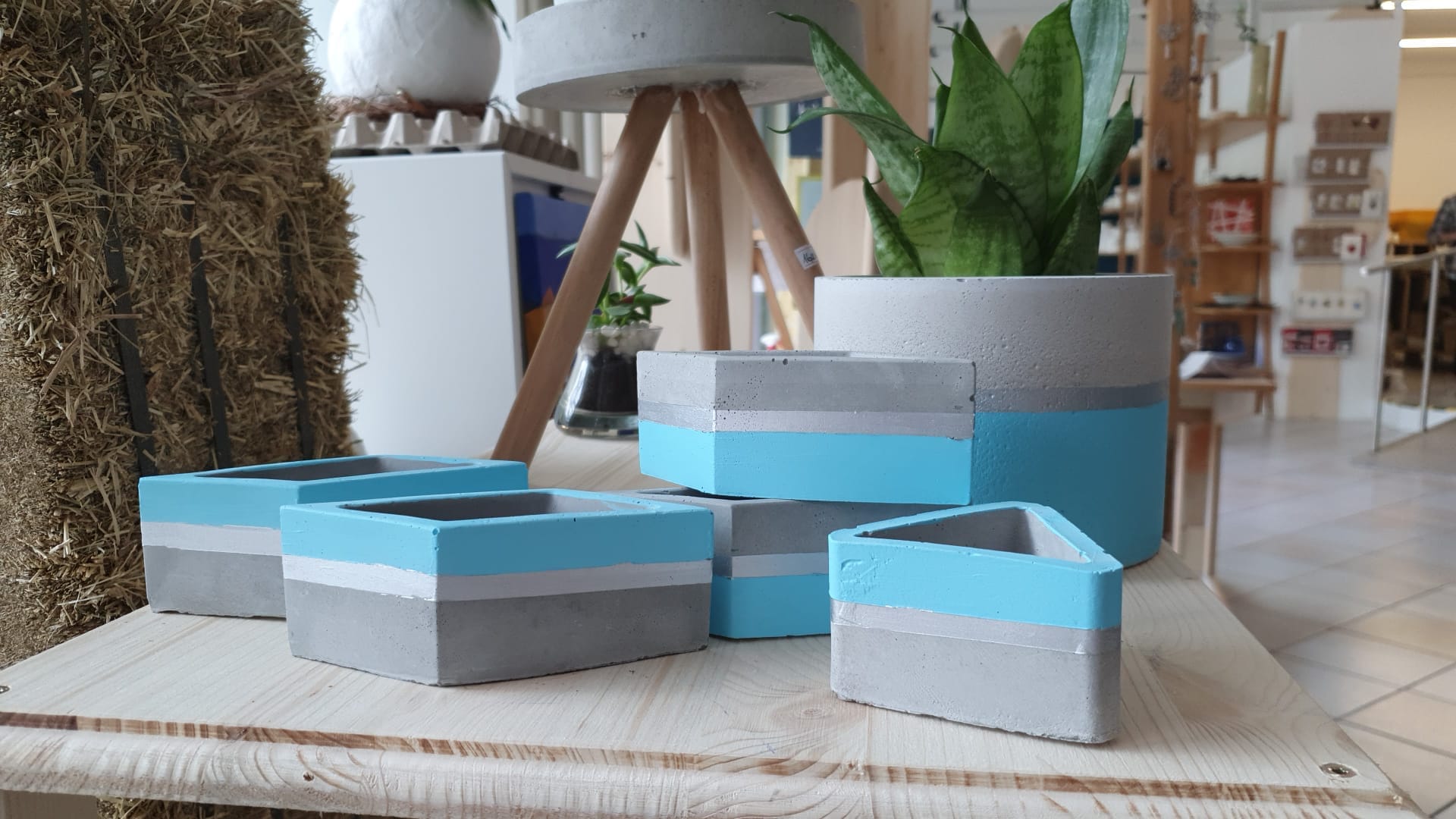 vasetti in cemento dipinti in vari colori e motivi