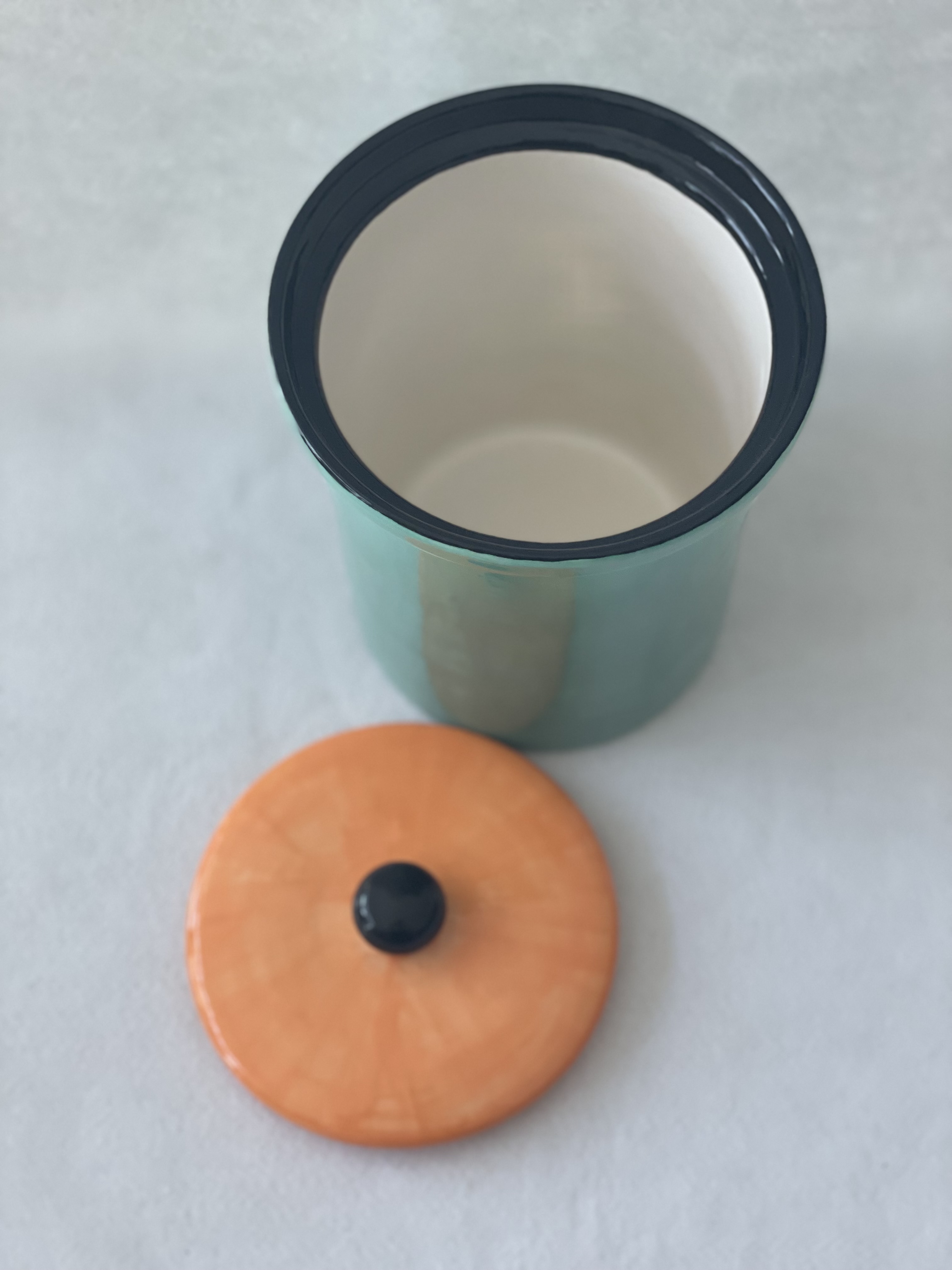 contenitore per biscotti, caramelle, etc., in ceramica, con coperchio