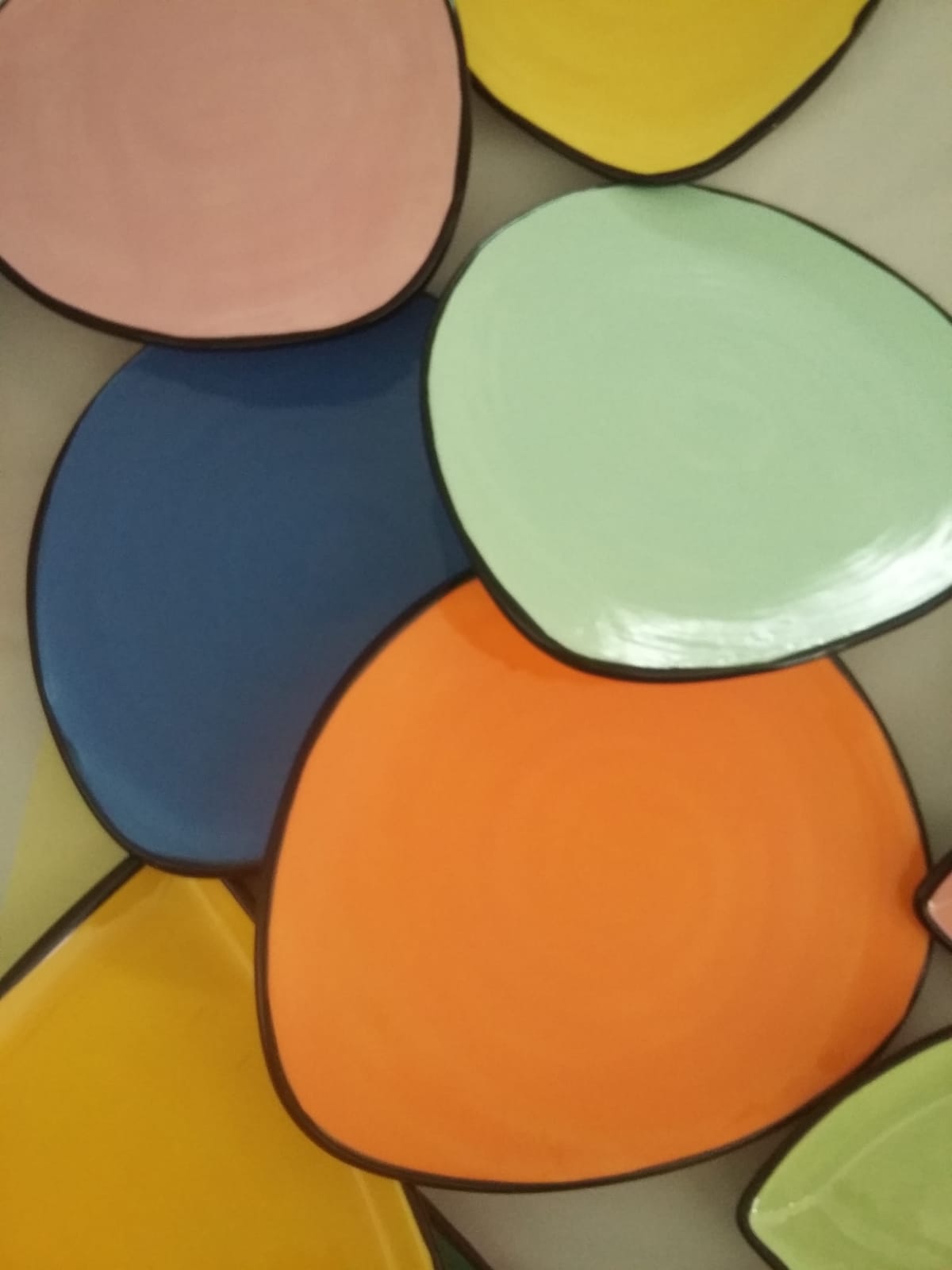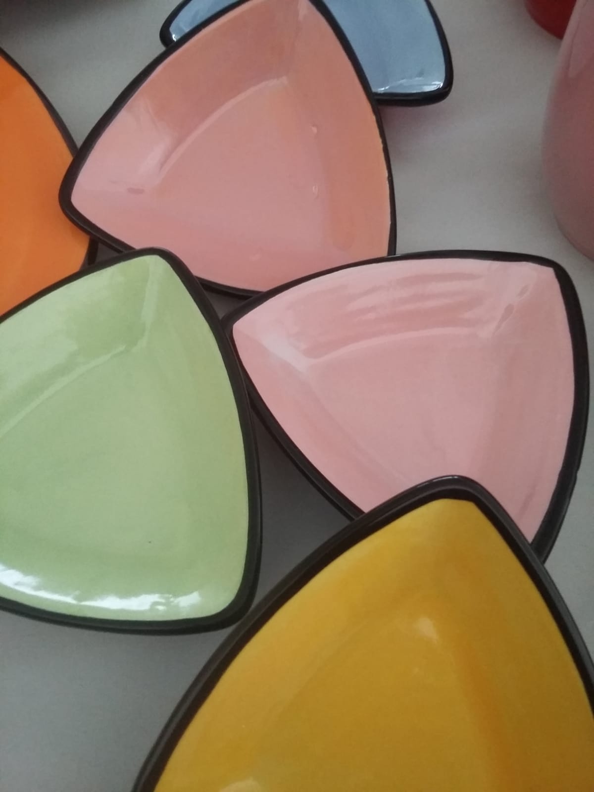 set di tazze, tazzine e piatti varie misure bicolor, abbinabile fra loro