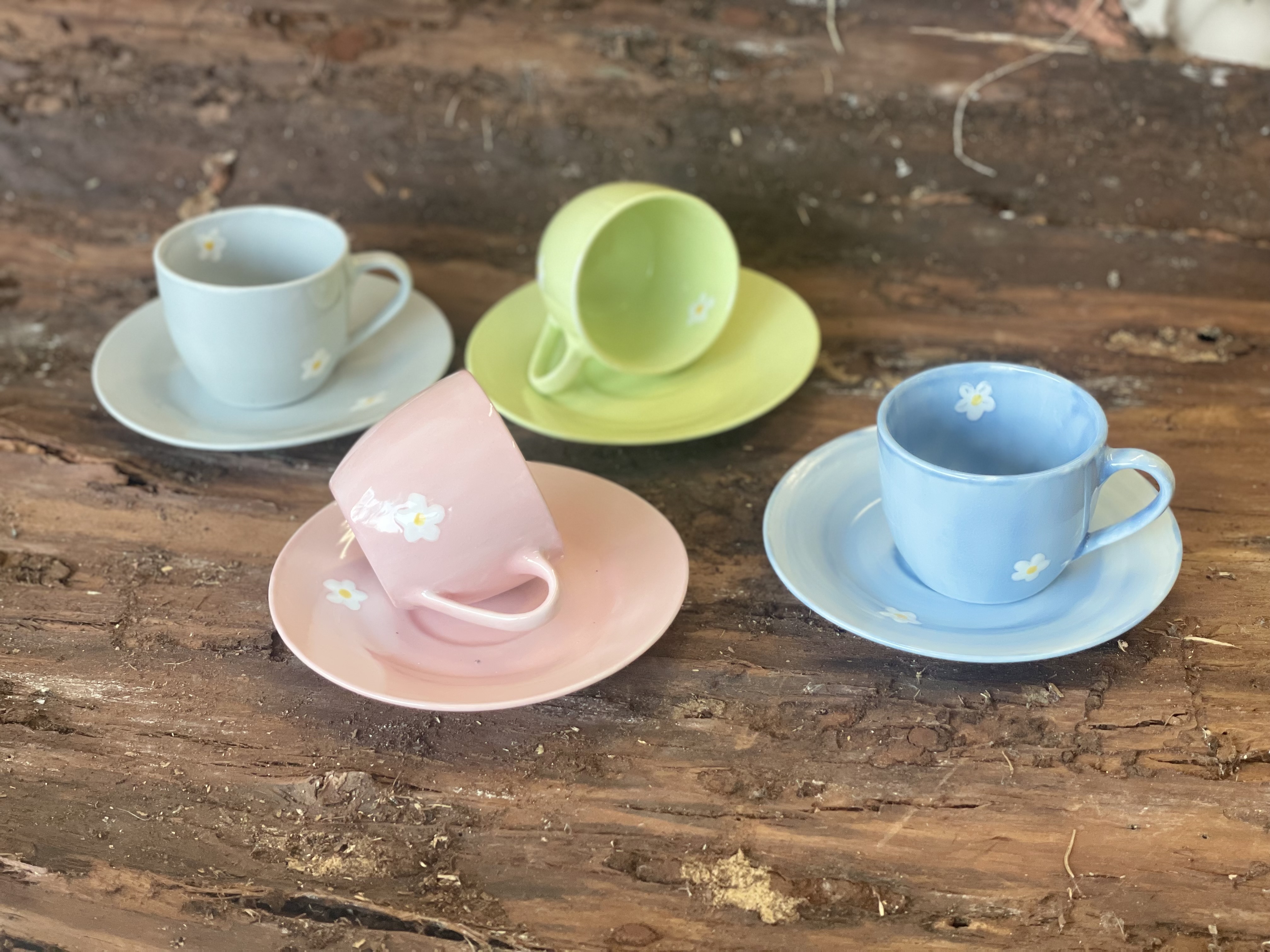 tazze di ceramica ,disegno fiore