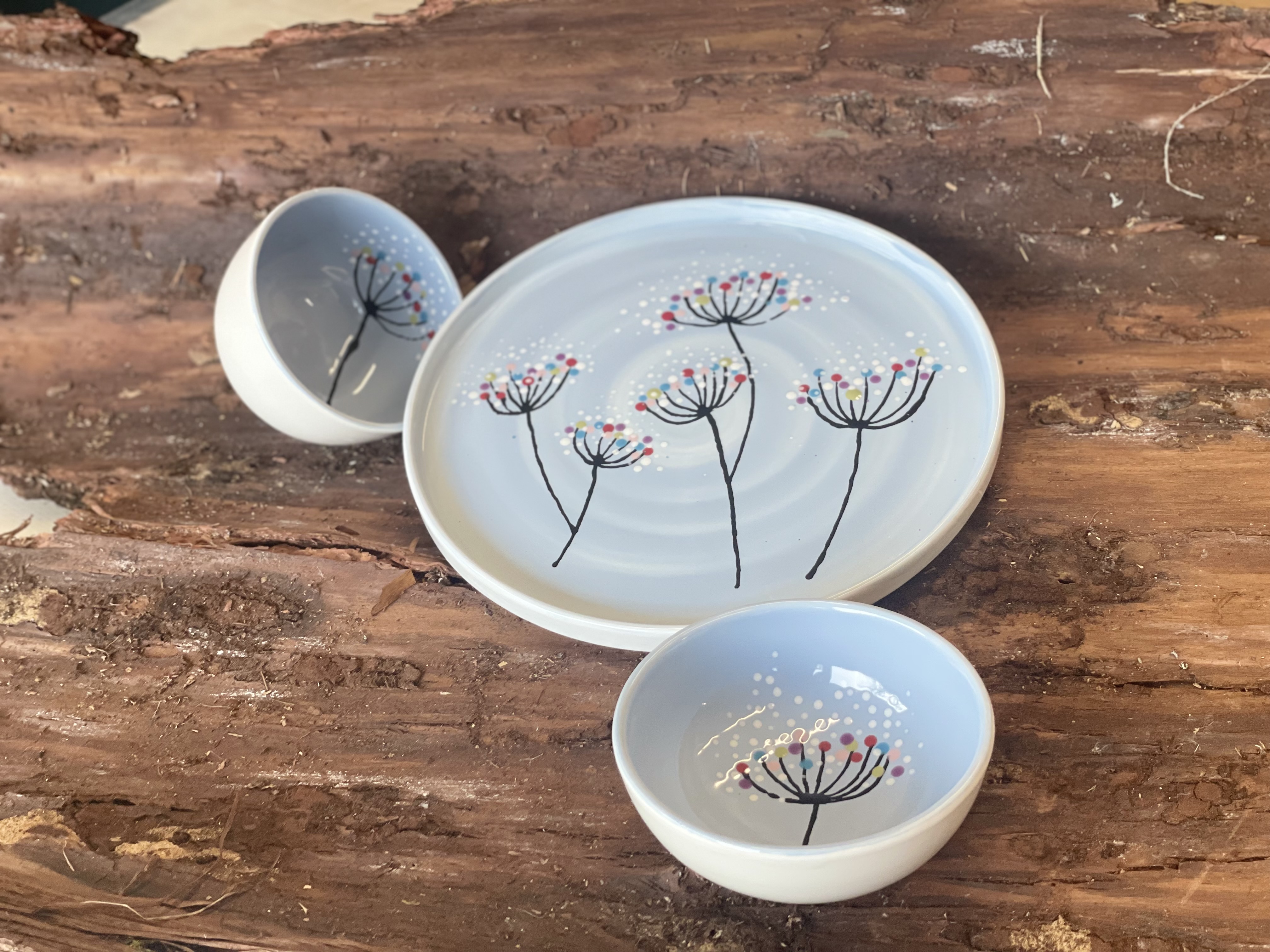 piatti e ciotole in ceramica, con disegno "soffioni"